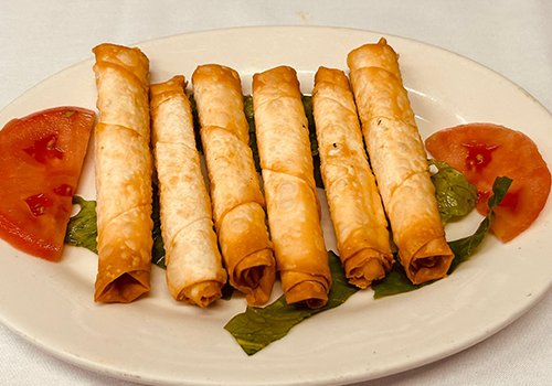 Filo dough wrapped with Turkish feta cheese and parsley then deep fried.